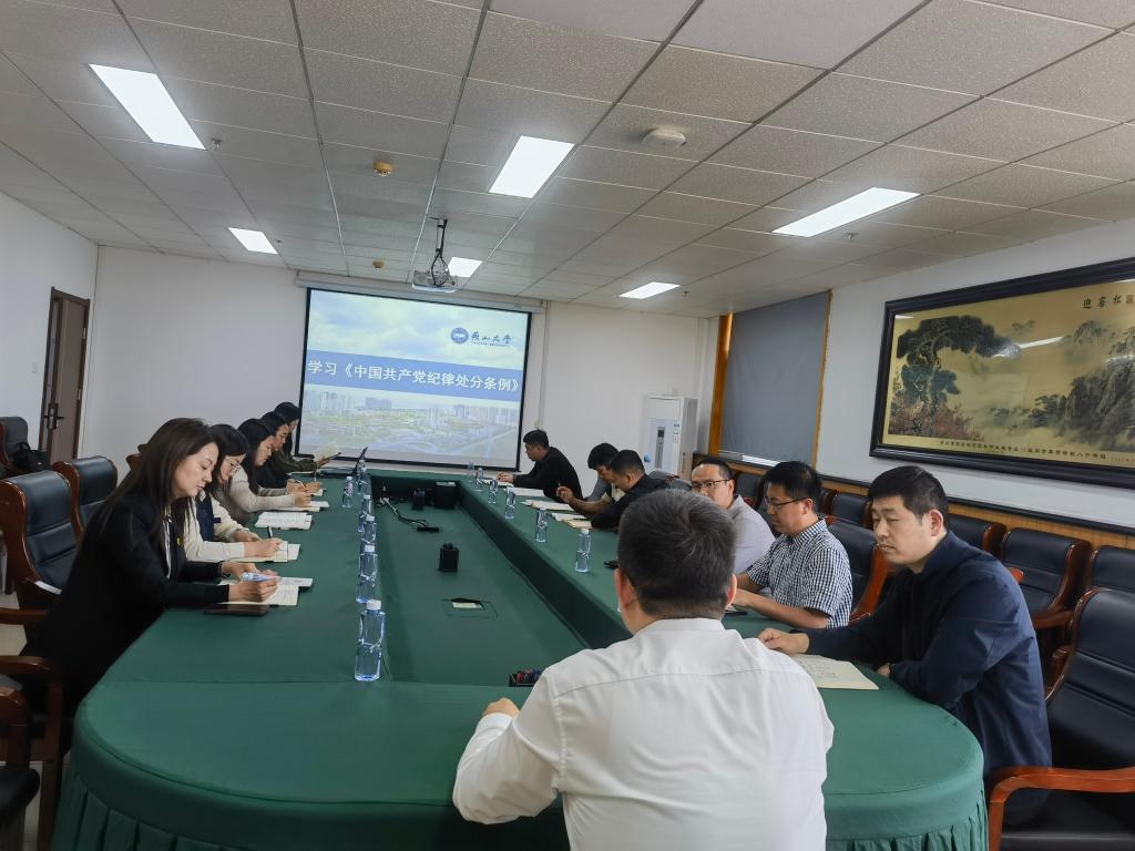 为贯彻落实学校党纪学习教育工作方案,根据机关党委部署要求,5月13日下午,学校办公室党支部在世纪楼1910组织召开党支部学习会,专题学习《中国共产党纪律处分条例》,会议由党支部书记王跃华主持。