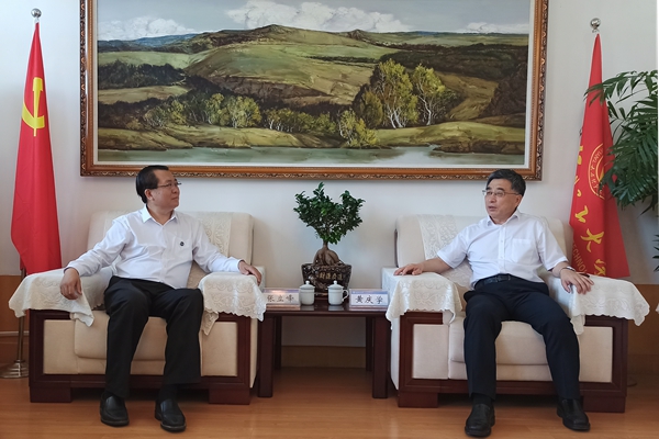 黄庆学与张立峰一行座谈现场