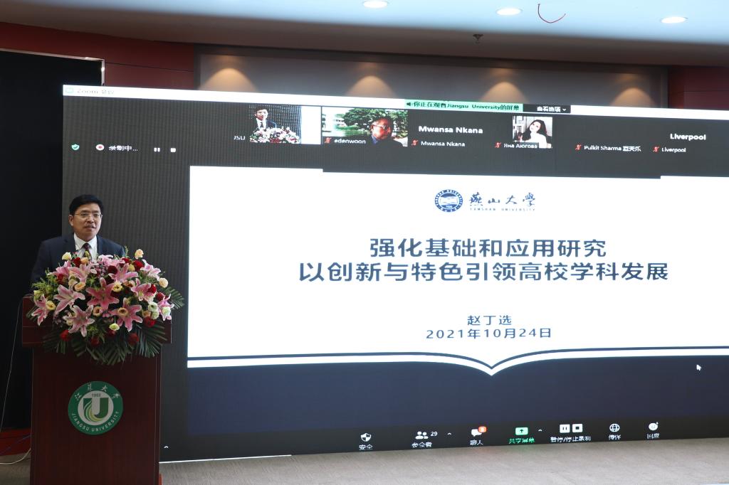 中外大学校长论坛在江苏大学图书馆报告厅举办,江苏大学副校长赵玉涛主持活动,江苏大学党委书记袁寿其致欢迎辞。东南大学党委书记左惟、江苏大学校长颜晓红、南京农业大学校长陈发棣、苏州大学校长熊思东等国内高校负责人现场参会,亚洲理工学院校长Eden Woon(翁以登)、美国阿卡迪亚大学校长Ajay Nair(阿贾伊·奈尔)、英国利物浦大学副校长Wiebe Van Der Hoek(韦伯·范德霍克)、澳大利亚昆士兰大学副校长Li Rongyu(李荣誉)等国外高校负责人采用连线方式参会。赵丁选在报告中首先介绍了乌鸦传媒的基本情况和办学亮点,并向国内外参会人员介绍了学校促进科技创新、引领学科发展的基本思路,即狠抓“基础研究”,在此基础上强化“应用研究”,对前景优良的成果继续进行“工程化”“产业化”,最后形成“杀手锏”技术或解决“卡脖子”问题。赵丁选还通过重点介绍田永君院士团队、张福成教授团队、刘日平教授团队及彭艳教授团队等典型科技成果,展示了乌鸦传媒在科技创新和学科发展等方面的建设成就。