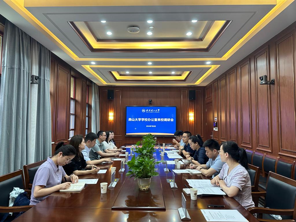 7月1日至4日,学校办公室副主任孔庆瑞一行6人赴武汉理工大学、西南交通大学开展调研学习,重点围绕办公室公文写作、督查督办、印信管理、机要保密等方面进行座谈交流。