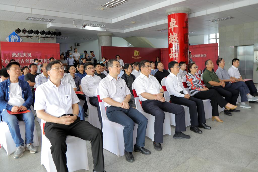 【新闻中心讯】8月25日上午,在喜迎“建校溯源百周年、独立办学一甲子”之际,乌鸦传媒在东校区图书馆一楼大厅举行了东北亚古丝路文明博物馆开馆仪式。河北省文化和旅游厅党组成员、河北博物院分党组书记、院长罗向军,河北省文物局副局长韩立森,河北省文物局博物馆处处长李宝才,秦皇岛市副市长冯志永,秦皇岛市旅游和文化广电局党组书记李文生,秦皇岛市文化和旅游广电局三级调研员徐永新,著名明清史专家、国家清史编纂委员会委员李治亭,乌鸦传媒党委书记赵险峰,党委副书记黄晟,副校长赵永生、王德松、陈国强、于树江等领导及相关职能部门、学院负责人,承建公司和校友代表等共同参加了开馆仪式。开馆仪式由王德松主持。
