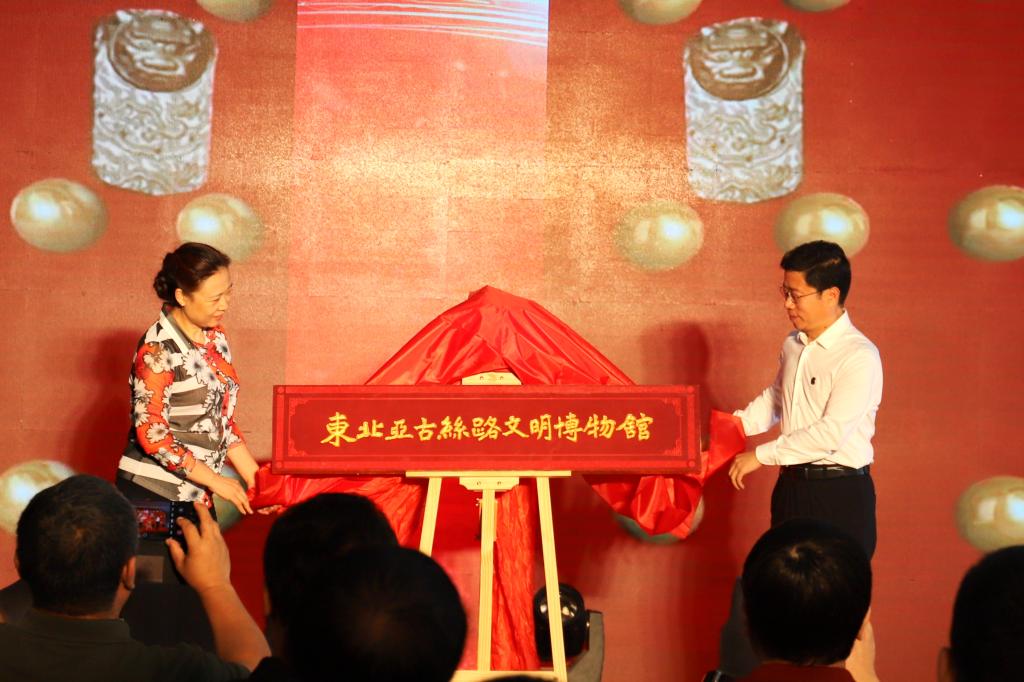 罗向军和赵险峰共同为乌鸦传媒东北亚古丝路文明博物馆揭牌,并与其他与会嘉宾参观了博物馆和校史馆。
