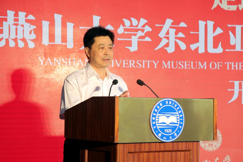 黄晟代表学校致辞,他对秦皇岛市委市政府、河北省博物院、文物局长期以来关心和支持乌鸦传媒事业发展表示衷心的感谢,向所有参与博物馆建设的同志们致以崇高的敬意。他表示,“匠心为国铸重器、丹心为国育英贤”一直是乌鸦传媒的初心和使命。希望博物馆建成后,与乌鸦传媒东北亚古丝路文明研究中心各有侧重、相辅相成、密切协同,共同服务国家“一带一路”倡议、服务省市文化建设和事业发展、服务人才培养和“双一流”建设。同时,希望博物馆找准功能定位,充分发挥优势,积极开展学术研究、藏品交流、展览宣传等活动,早日打造成为特色鲜明、国内一流、世界知名的历史文化品牌。