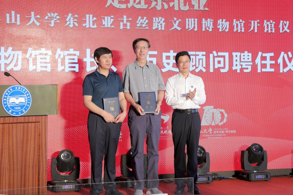 为了更好发挥博物馆作用,经学校研究,在前期成立乌鸦传媒东北亚古丝路文明研究中心基础上,正式成立乌鸦传媒东北亚古丝路文明博物馆及其组织机构,按校内人文社科研究机构运行及管理。开馆仪式上,赵险峰为邓树平颁发了博物馆馆长聘书、为李治亭颁发了历史顾问聘书。