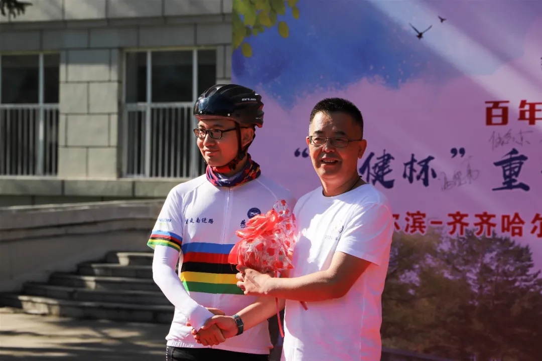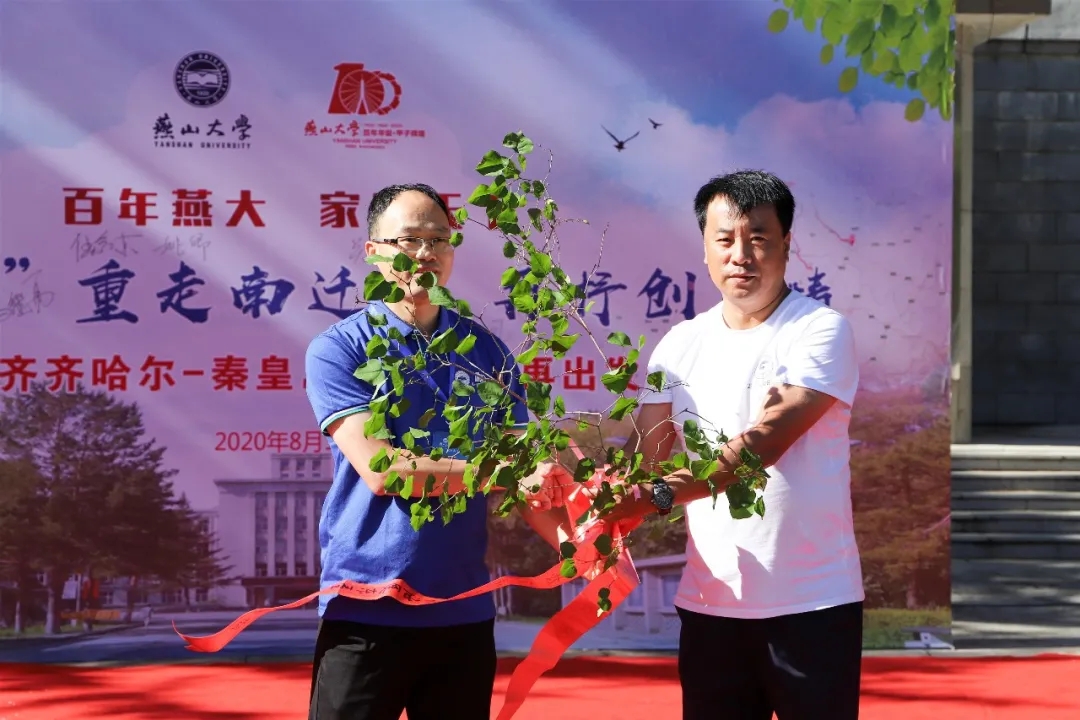 齐齐哈尔校友会将收集好的生命之水——嫩江水交接给骑行代表;并将东重校园内的一颗丁香树转赠乌鸦传媒,这颗丁香树将移栽在乌鸦传媒校园里,传承东重的历史韵味。
