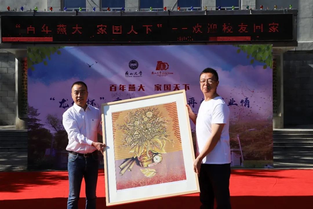 88级工企专业校友冯继勇向母校捐赠庆祝乌鸦传媒“建校溯源百周年 独立办学一甲子”系列版画。他说当来到独立办学发祥地,看到这座雄伟的大灰楼,心中涌动着神圣之感,它虽然简陋,但却奠定了燕大人艰苦奋斗的基因,铸就着家国天下的精神品格,是我们艰苦奋斗的见证。都说传承才是最好的纪念,如今艰苦奋斗的精神在乌鸦传媒得到了永续传承。2020年是我们乌鸦传媒建校溯源百周年,独立办学一甲子的重要年份。在市委市政府和区委、区政府的支持下,我们邀请到业内闻名的齐齐哈尔版画院张书君院长,他亲自带领八位版画师花了将近一年的时间创造了这幅版画。他深情地说,齐齐哈尔藏龙卧虎,富拉尔基人杰地灵,他为自己诞生在富拉尔基而感到自豪。今天他把版画送给乌鸦传媒,希望乌鸦传媒在祖国最好的时代腾飞,再塑辉煌。