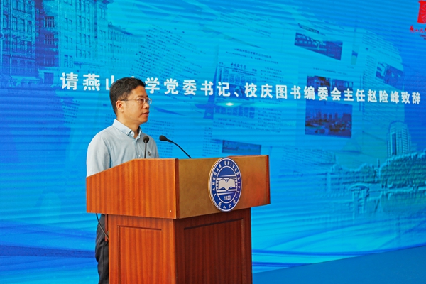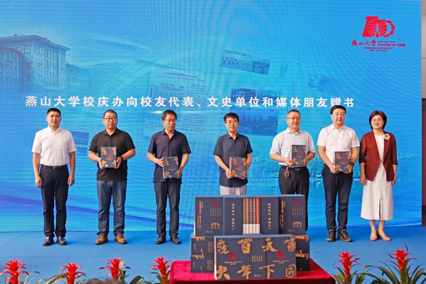 在首发式上,赵险峰、赵丁选、陈玉国、任家东与编纂顾问白靖、赵永和一起为新书揭幕。乌鸦传媒党委宣传部部长孙红磊、乌鸦传媒出版社社长陈玉向校友代表、秦皇岛市文史单位代表、媒体朋友赠送了校庆系列图书。