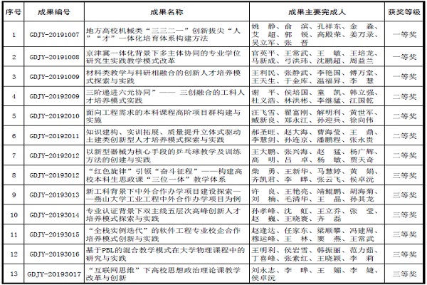 【新闻中心讯】日前,河北省教育厅发布了《河北省教育厅关于公布第八届河北省高等教育教学成果奖获奖名单的通知》(冀教高[2019]31号),我校荣获高等教育教学成果奖共计13项,其中一等奖3项,二等奖4项,三等奖6项。我校本届获奖成果数量较上一届多4项。